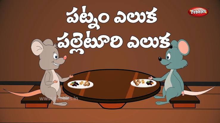 పల్లె ఎలుకను చూడాలని ఒక పట్నం ఎలుక ఊరికి వెళ్ళింది. పల్లె ఎలుక పొలంలో ఉండేది. తన దగ్గర ఉన్న శనగలు, గోధుమలు, వరి మొదలైన గింజలు పట్నం ఎలుకకి పెట్టింది.